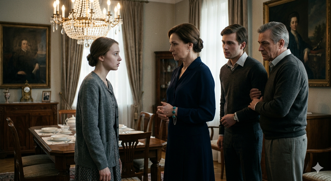 Их встречала Светлана Павловна — мачеха Дмитрия, элегантная женщина лет пятидесяти с безупречной укладкой и холодным взглядом. Она стояла в гостиной, демонстративно сложив руки перед собой. И именно тогда Екатерина впервые увидела браслет — тонкую серебряную работу с голубыми камнями бирюзы, потемневшую от времени, но всё ещё прекрасную.