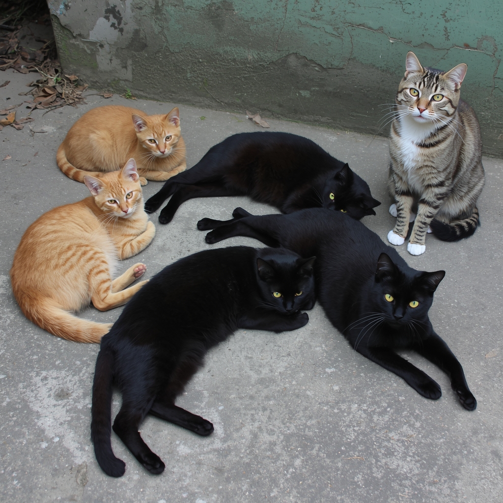 Коты, не дождавшись Бабку, понуро разошлись. Остались несколько самых стойких. Рыжий – местный глава, пышнохвостый Черныш, новенький Дымок и битый жизнью Одноухий.