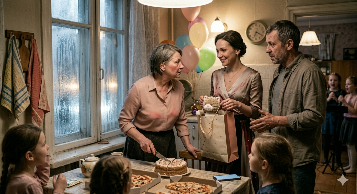 Марина осталась — тактичная, тихая, сидела в углу, не лезла. Помогла разложить пиццу, налить сок. Девочки из класса не обратили на неё внимания — для них она была очередной «тётей». Для Полины — не была.