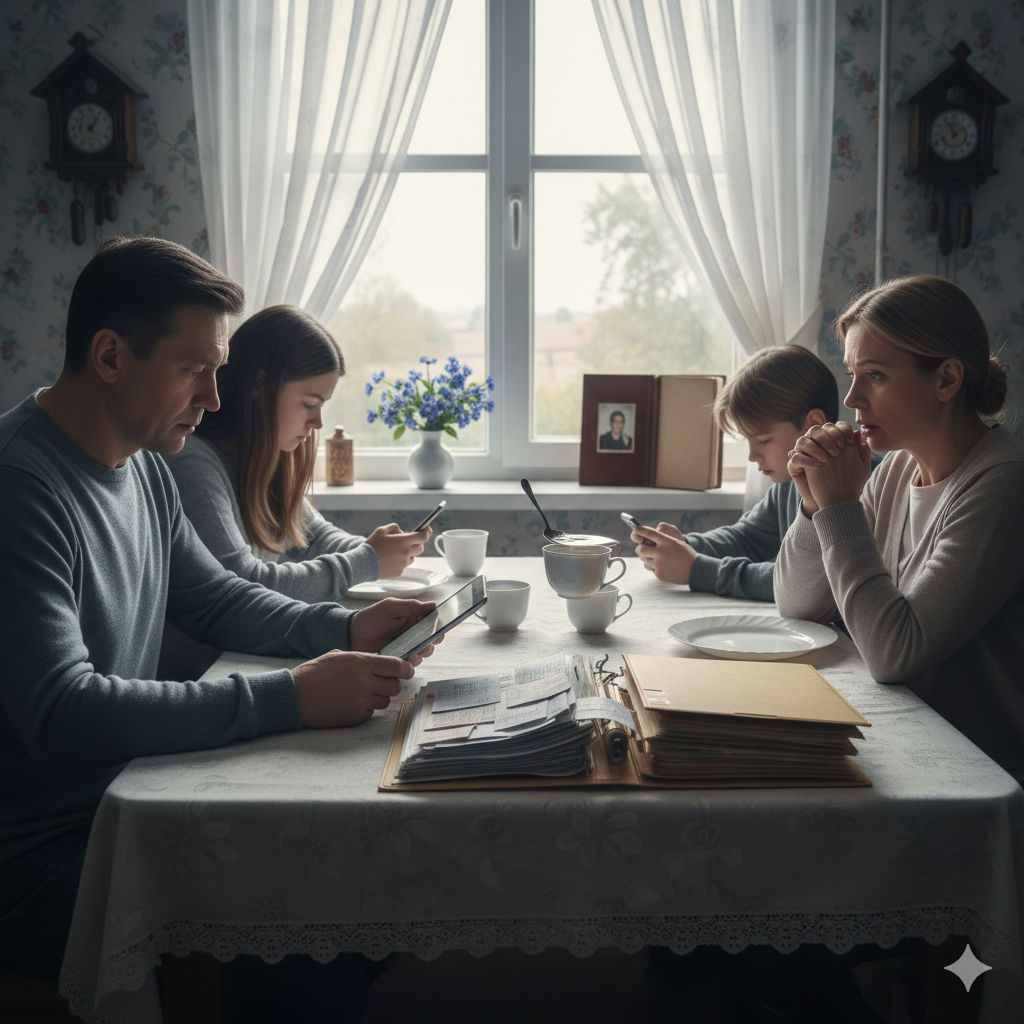 «Сидела дома». Фраза врезалась в висок. Я посмотрела на свои руки. Уже не очень молодые, с проступающими венами. Эти руки стирали тысячи пелёнок, готовили тонны супов, лепили снеговиков во дворе, держали детские лбы во время жара. Они вязали шарфы по вечерам, пока Сергей смотрел футбол. Они гладили его рубашки, которые он надевал на свои «важные встречи». «Не других обязанностей».