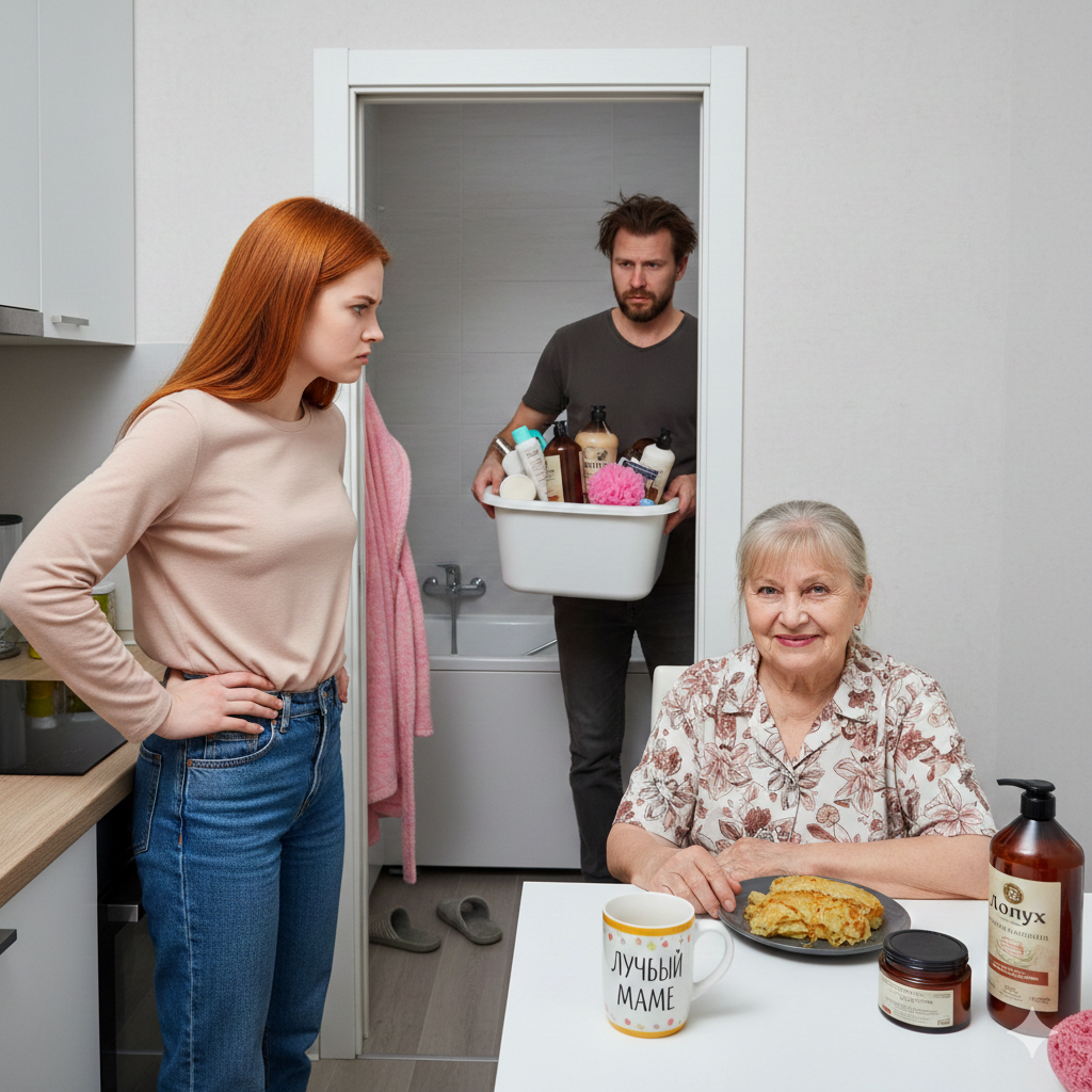 — Эм… Это мама принесла свои вещи. Ей, наверное, удобнее, когда всё под рукой… — пробормотал он, стараясь не смотреть жене в глаза.