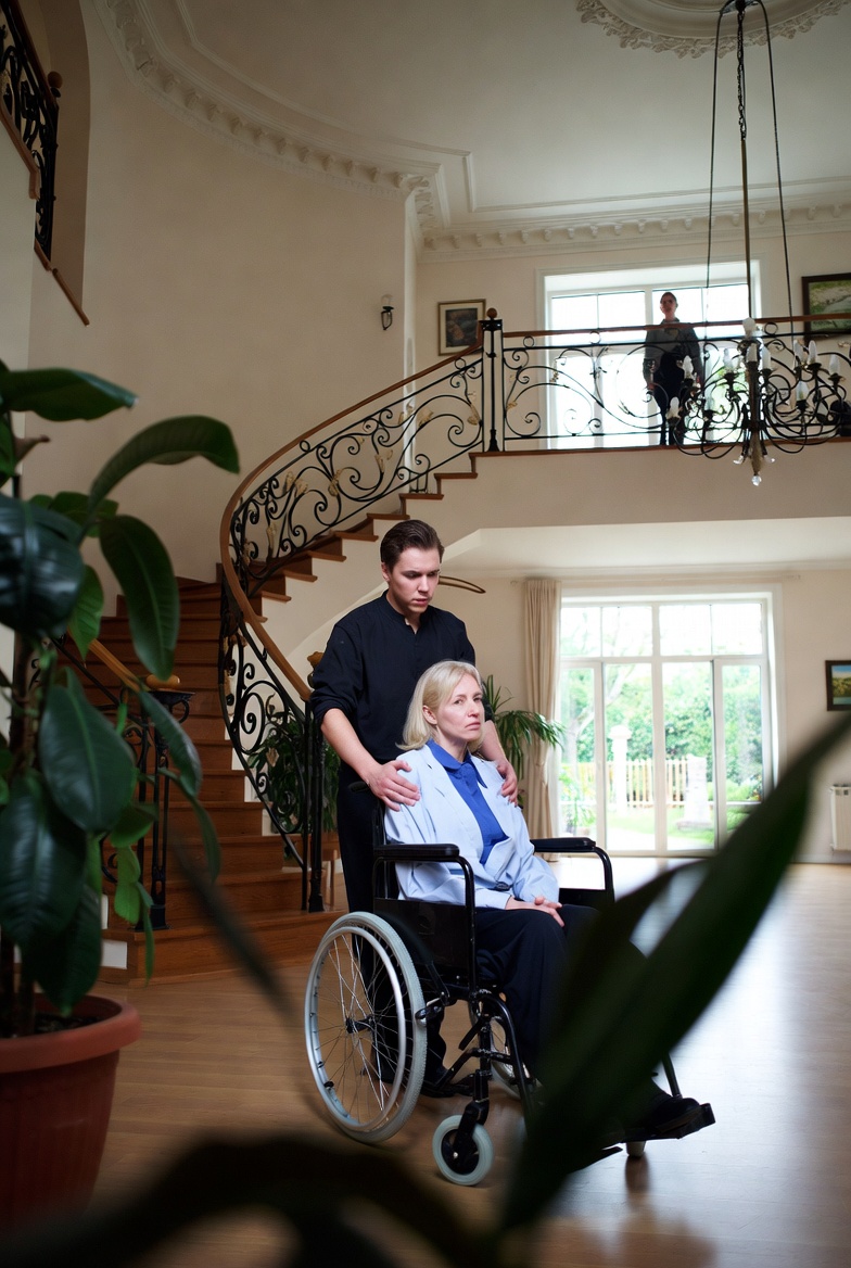 Он живёт с Татьяной в том самом доме, ухаживает за ней, поскольку женщина пока находится в инвалидном кресле.