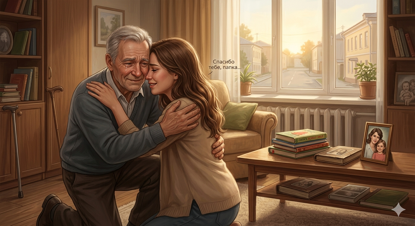 — Спасибо тебе, папка… — прошептала Таня, а он замер, держа её в своих объятиях, словно услышал что-то самое дорогое и заветное…
