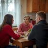 В назначенный день в двушке свекрови собралось больше двадцати человек. Некоторые сидели на стульях, остальные — на кроватях, табуретках с балкона, даже подоконниках. Дети носились, задевая вазы, мужчины сдвигали брови, пока спорили о политике, а Раиса бегала между плитой и залом, постоянно что-то забывая.