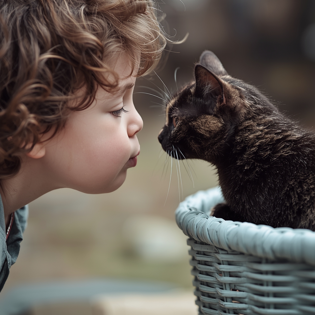 Она наклонилась над котятами и погладила их осторожно одним пальчиком.