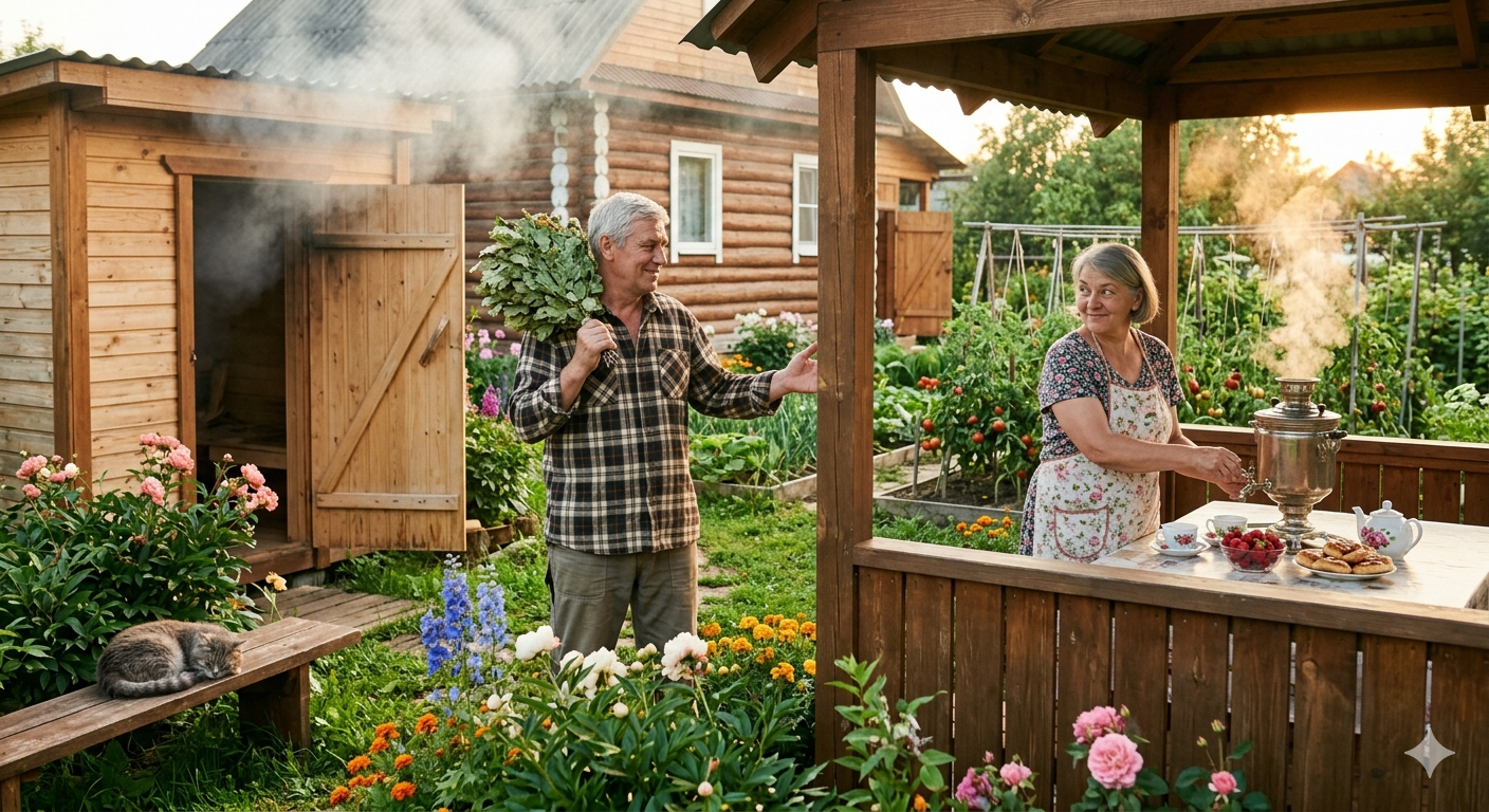 — Ещё и друзей тут завёл, — улыбалась Ира, готовя самовар в беседке. И сама потом шла мыться в тёплую баньку, когда там уже было не так жарко. Она звала Тоню, где они поговаривали, шутили и потирали друг другу спину…