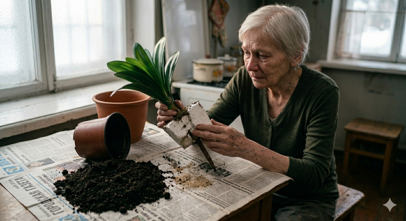 Она смотрела на это и не верила. Все эти месяцы — почти полгода — она поливала искусственное растение. Носила его на солнце, переставляла с места на место, удобряла, разговаривала с ним. Ждала живых цветов от пластмассы. Покупала дорогое удобрение, которое не могла себе позволить. Потратила последние деньги. Тащила пятикилограммовый пакет земли. Купила новый горшок. И всё это — ради пенопласта и пластика.