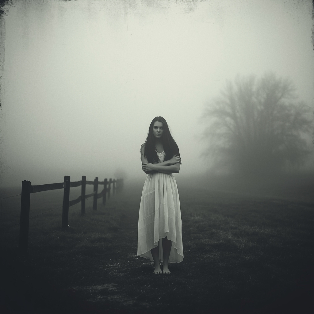 В углу стояла незнакомка. Через неё был виден рисунок на обоях. Светлые, длинные волосы. Огромные глаза и грустная улыбка.