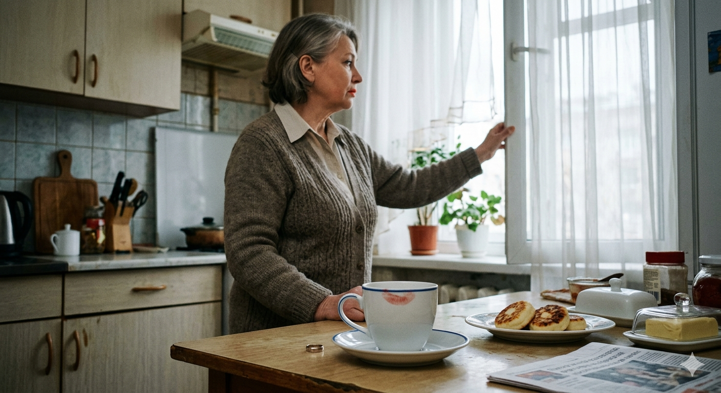 Не кольцо, не волосы, не мамино лицо, хотя всё это тоже было новым и неправильным. Именно чашка. Белая, с синей каёмкой, из старого сервиза, который мама доставала только по выходным, и на краю — свежий коралловый отпечаток губ. Не бордовый, не винный, не «возрастной благородный», как говорят журналы для женщин, которым уже всё надо делать «благородно». А живой, почти девичий цвет. Такой мама носила лет тридцать назад, когда ещё работала в аптеке, смеялась громче телевизора и умела спать до девяти.