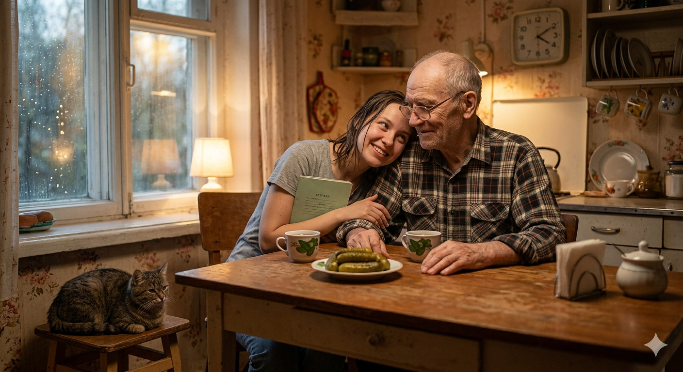 Аня усмехнулась, откусила огурец и вдруг остро почувствовала, как хорошо, что у неё есть этот дом, эта кухня, эти старые часы и один упрямый дед, который, может, и не рентген, зато её жизнь видит яснее, чем любой «успешный» жених.