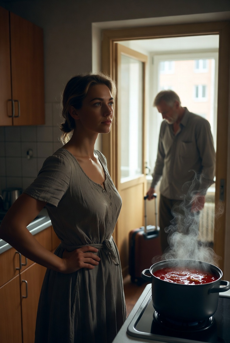 Лидия замерла с половником над кастрюлей. Борщ булькал, выплёскивая красные капли на плиту.