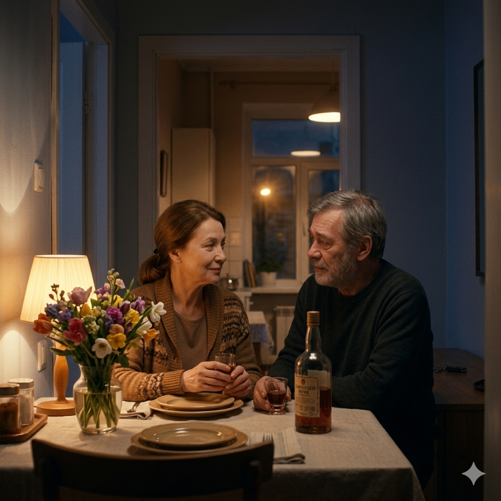 Однажды вечером они сидели на кухне и ужинали. За окном медленно темнело, в квартире горел мягкий свет настольной лампы, и атмосфера была почти домашней.