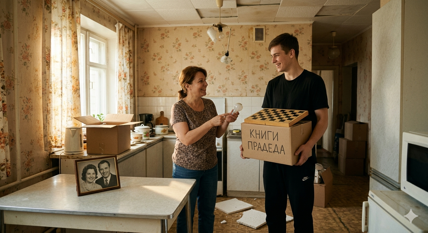 Сыну скоро восемнадцать, и он стал совсем взрослый. Уже не дерзит, и помогать стал во многих делах. Вот и сегодня Мишка сам вызвался поехать с Мариной в квартиру прабабушки и прадеда.