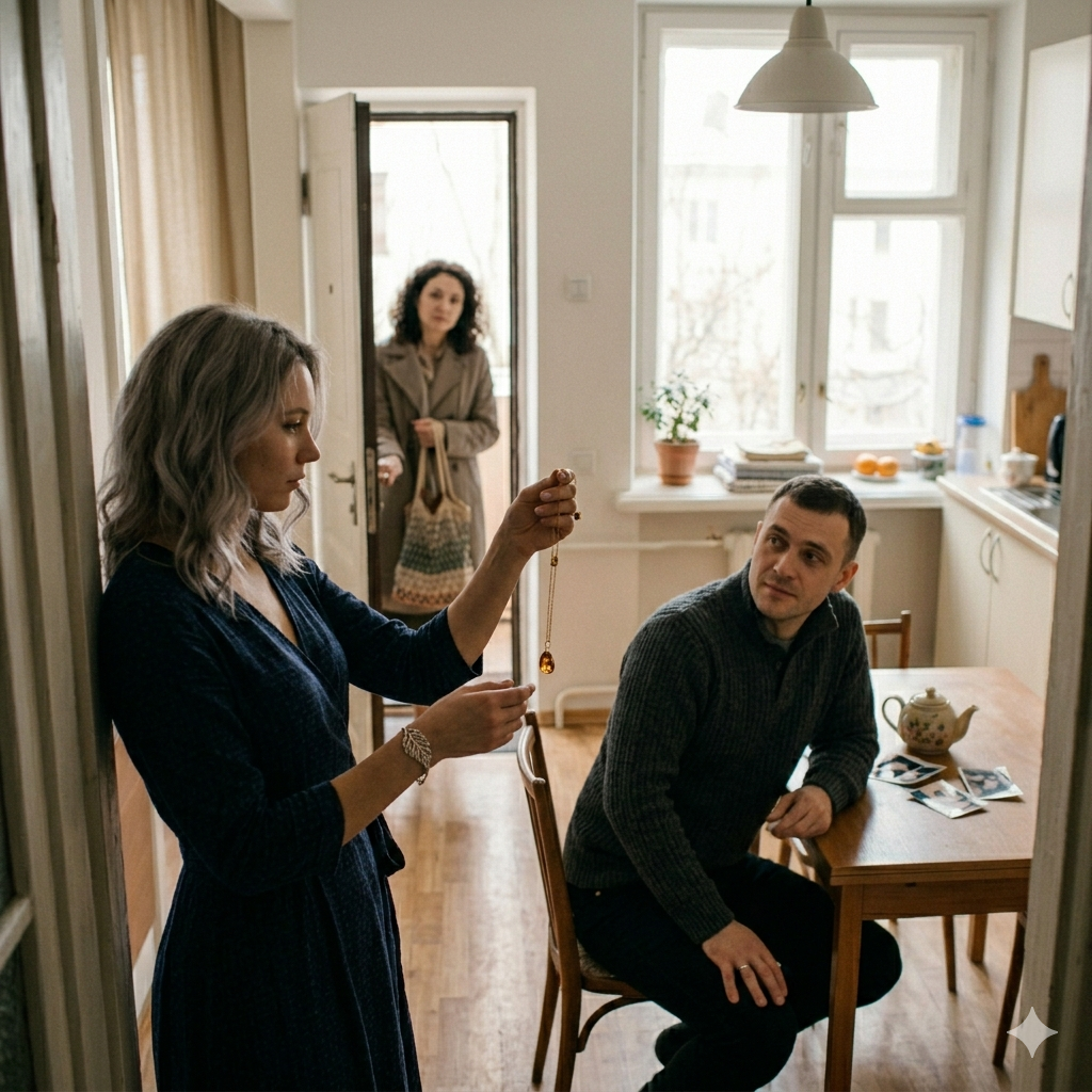 В этот момент у входа появилась она. Наталья вошла в зал лёгкой походкой, огляделась и заметила его. На ней было тёмное платье, которое он когда-то подарил ей на день рождения. Волосы аккуратно лежали на плечах, а на шее поблёскивала тонкая золотая цепочка с янтарным кулоном, тот самый сувенир из Калининграда.