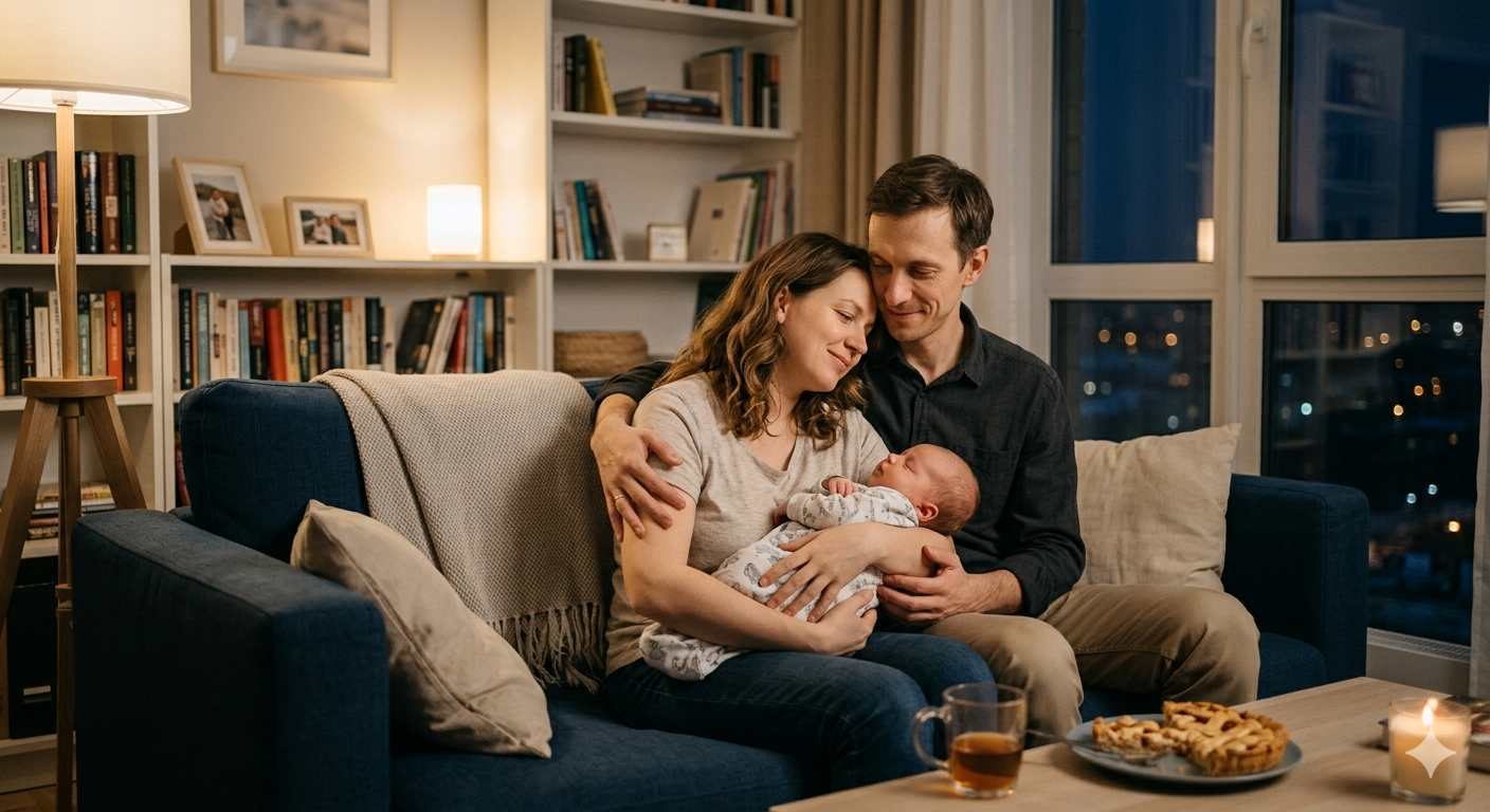 Вера посмотрела на спящего сына, на мужа, который зажигал бенгальские огни, и подумала: «Счастье не там, где громкие клятвы и красивые песни. Счастье там, где тихое утро, чай с пирогом и чьё-то тёплое плечо, на которое можно опереться, когда темно».