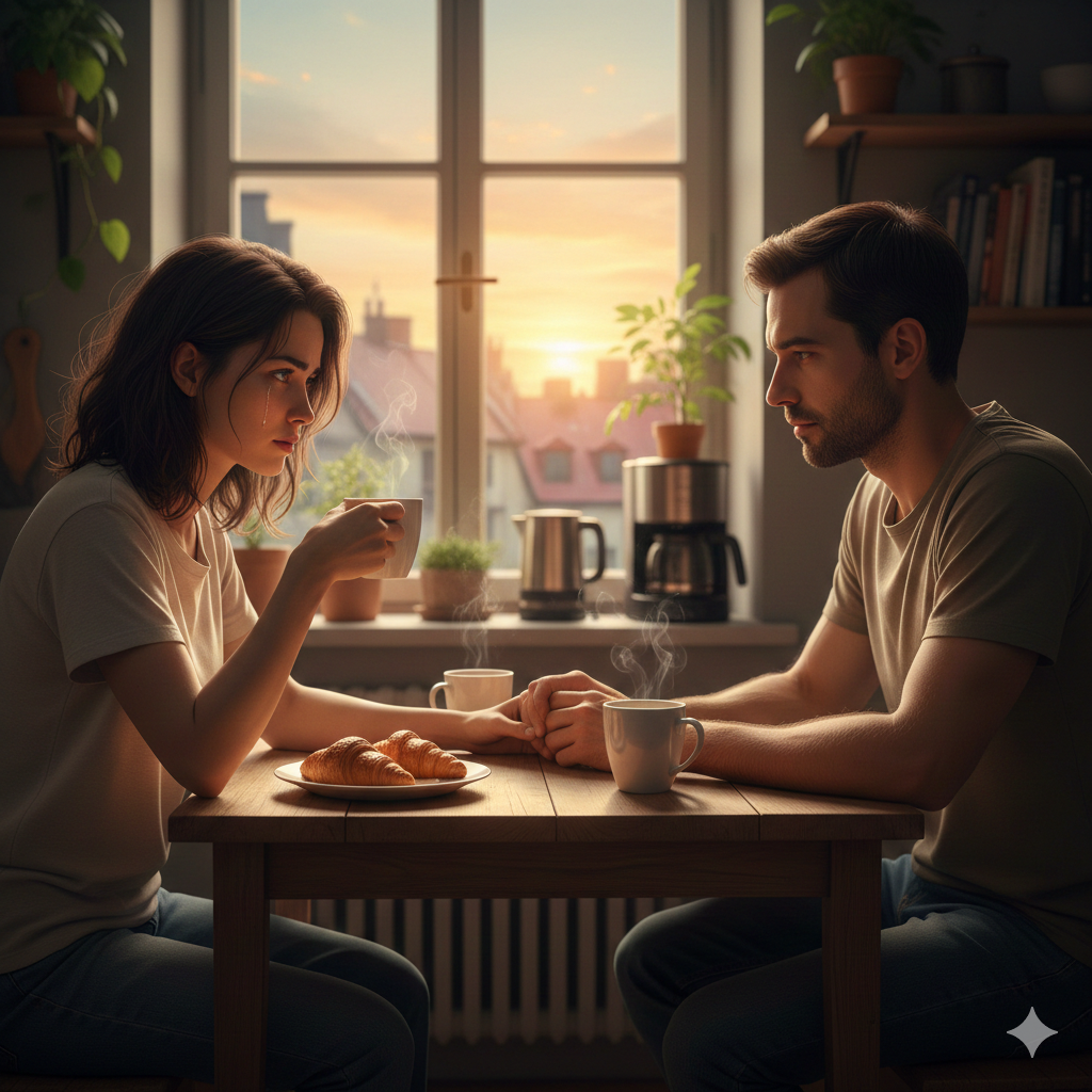 Через час она сидела у него на кухне. Алексей поставил перед ней чашку с ароматным чаем, сел напротив, не торопил, не задавал лишних вопросов – просто был рядом. Марина начала рассказывать. Сначала осторожно, подбирая слова, потом всё свободнее. Она говорила о детстве, о годах, когда прятала обиды глубоко внутри, о страхе стать похожей на отца, о том, как научилась закрываться от людей. На этот раз слёз не было – только облегчение от того, что наконец можно говорить об этом вслух, не боясь осуждения.