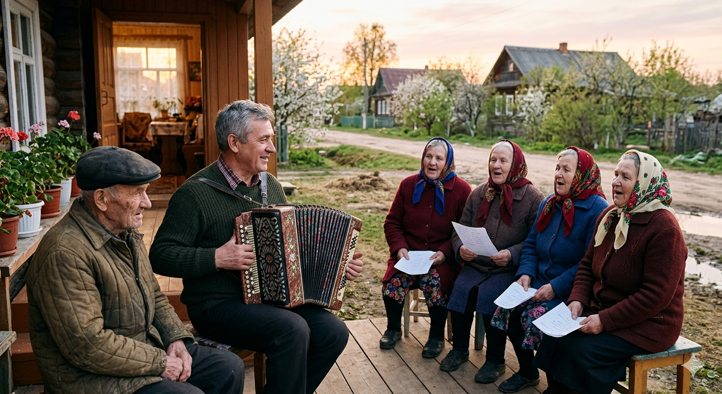 Соседки тут же подхватили песни, и поначалу недружно, а потом всё слаженнее запели любимые, почти позабытые песни их юности.