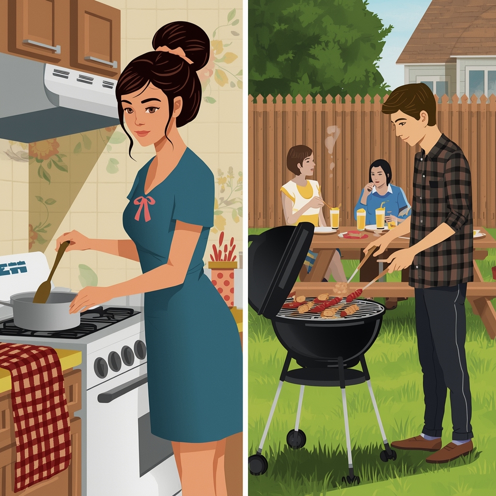 Женщина не претендовала на мангал. Мужчина не претендовал на плиту. Каждый знал своё место — и чувствовал себя на нём нужным. Это была не угнетение ради угнетения, а система, в которой каждая роль имела смысл. Другое дело, что система эта была несправедлива по нагрузке: ежедневный борщ требует больше сил, чем шашлык раз в месяц.