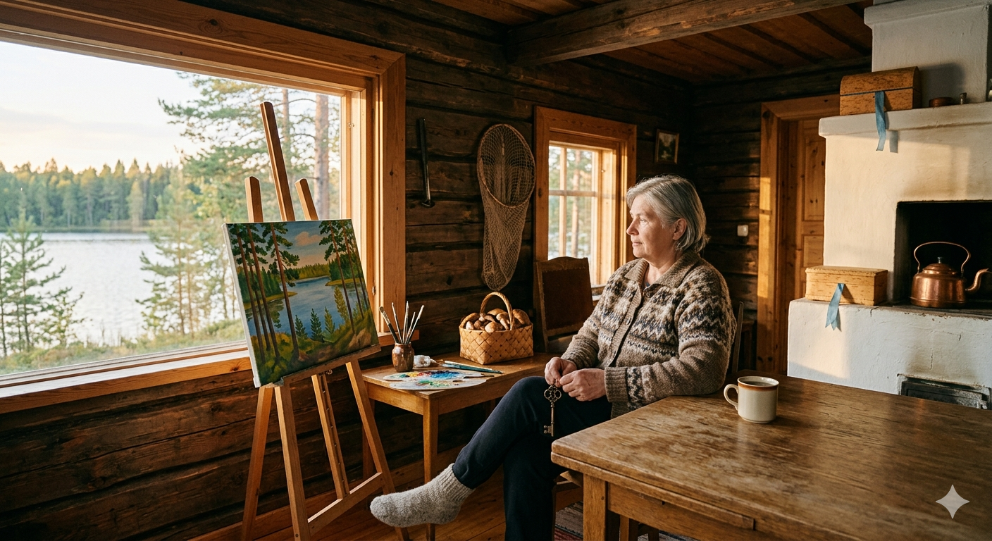Вера села на табурет, чувствуя, как земля уходит из-под ног. Она прочитала всё. Сорок лет назад, когда она только вышла замуж за серьезного, солидного Виктора, у него была другая жизнь. Женщина по имени Надежда. Они познакомились, когда он приезжал в Карелию по работе. Он строил этот дом своими руками. Каждое бревно, каждая половица были пропитаны их мечтой. Надежда была художницей, она писала карельские пейзажи. Они планировали уехать из города, жить здесь, вдали от суеты.