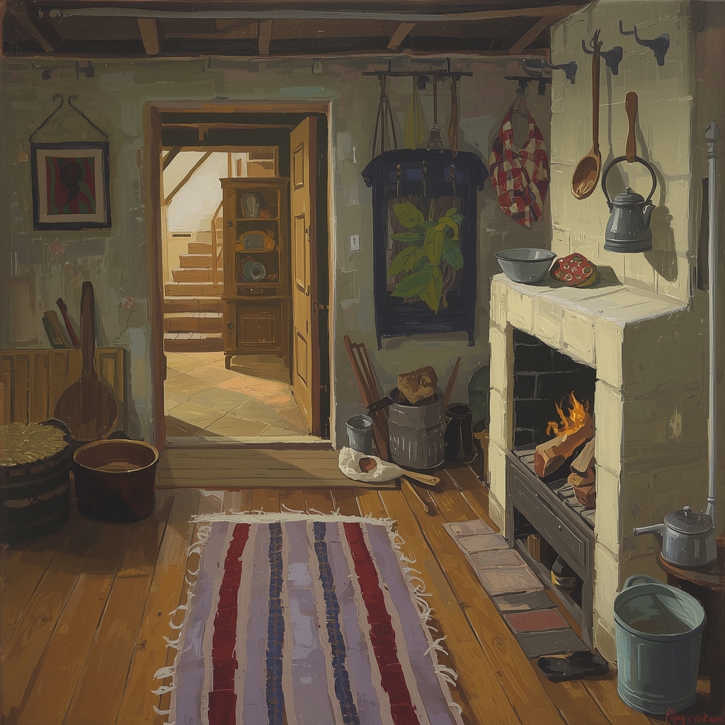 В доме забрался на печку и прижал полыхающий огнём зад к горячим кирпичам.
