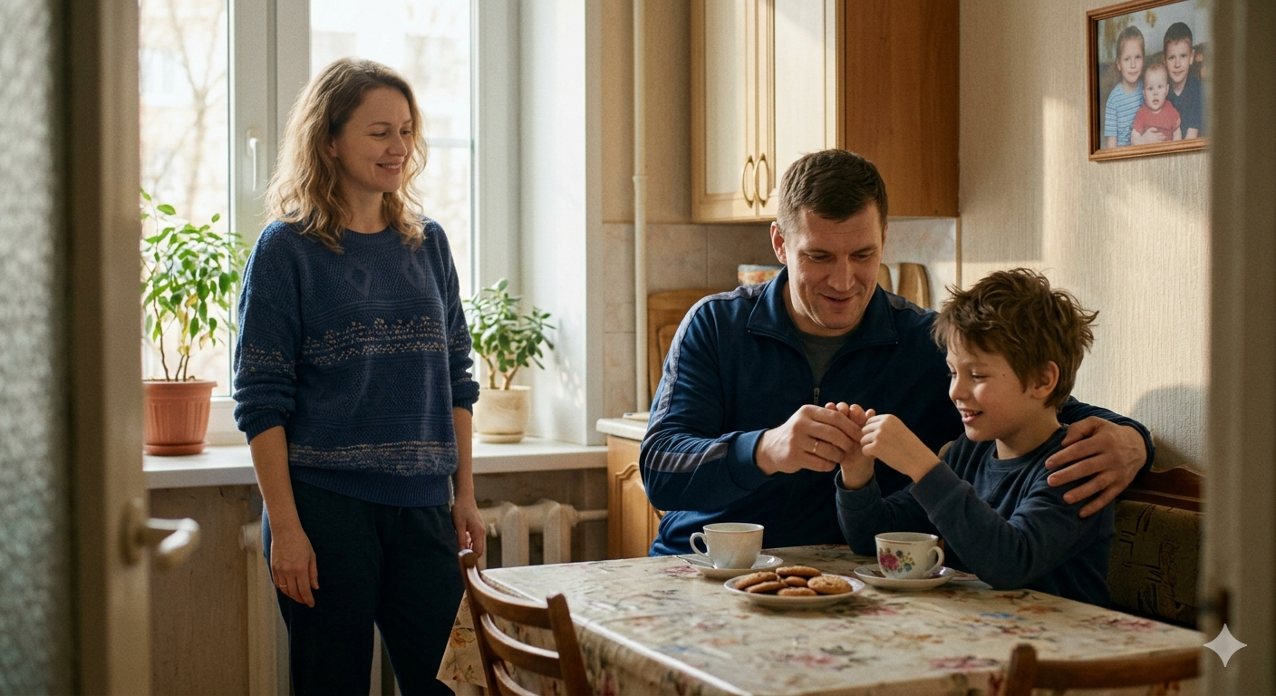 С того дня Андрей стал провожать Богдана домой после тренировок. Сначала просто здоровался у двери, потом однажды зашёл на минуту, потом задержался на чай.