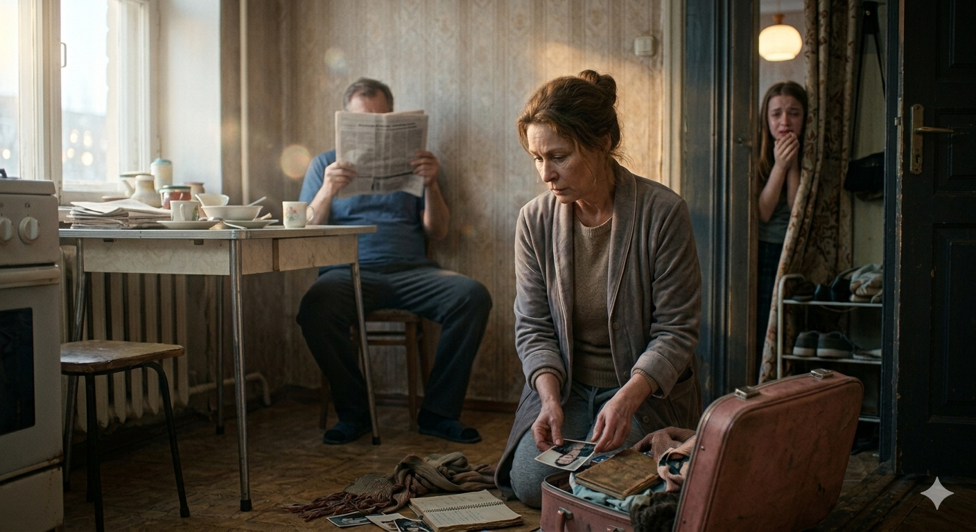 А Людмила стояла в спальне, доставая из шкафа старый чемодан. На дне лежала шкатулка с фотографиями молодости. Она открыла её, посмотрела на девушку в белом платье, смеющуюся рядом с высоким парнем, и тихо произнесла: