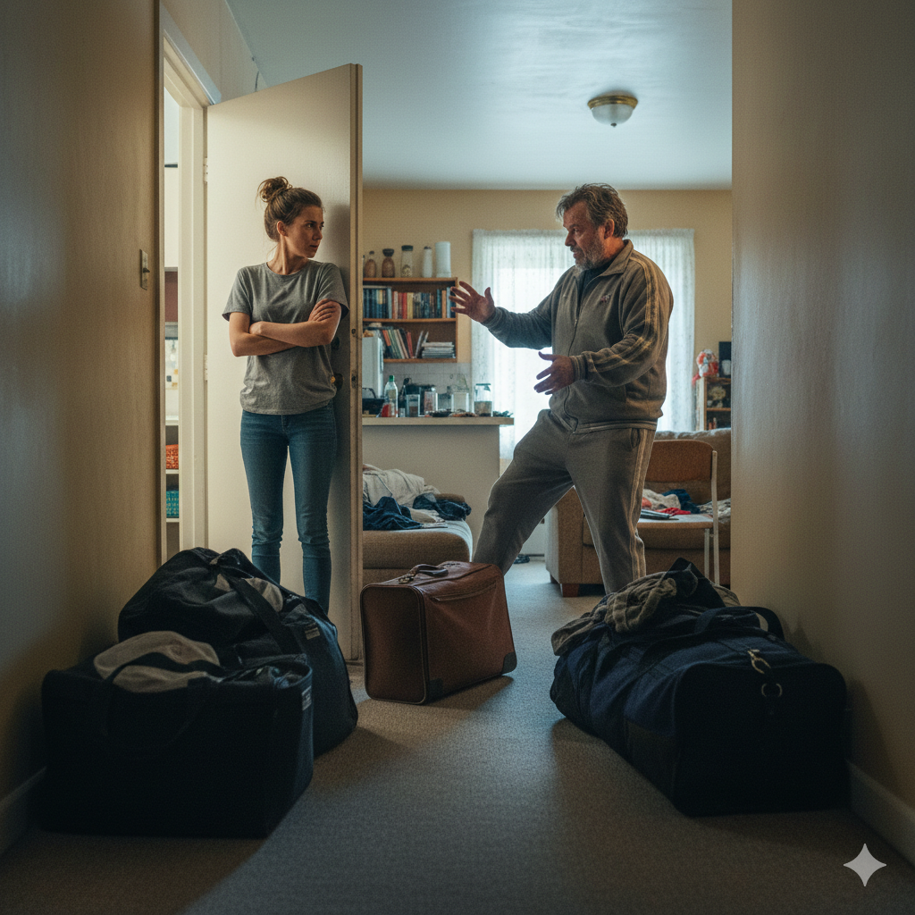 Вера замерла с ключами в руке, глядя на брата, который стоял на лестничной площадке в окружении трёх огромных сумок и какого-то потрёпанного чемодана на колёсиках.