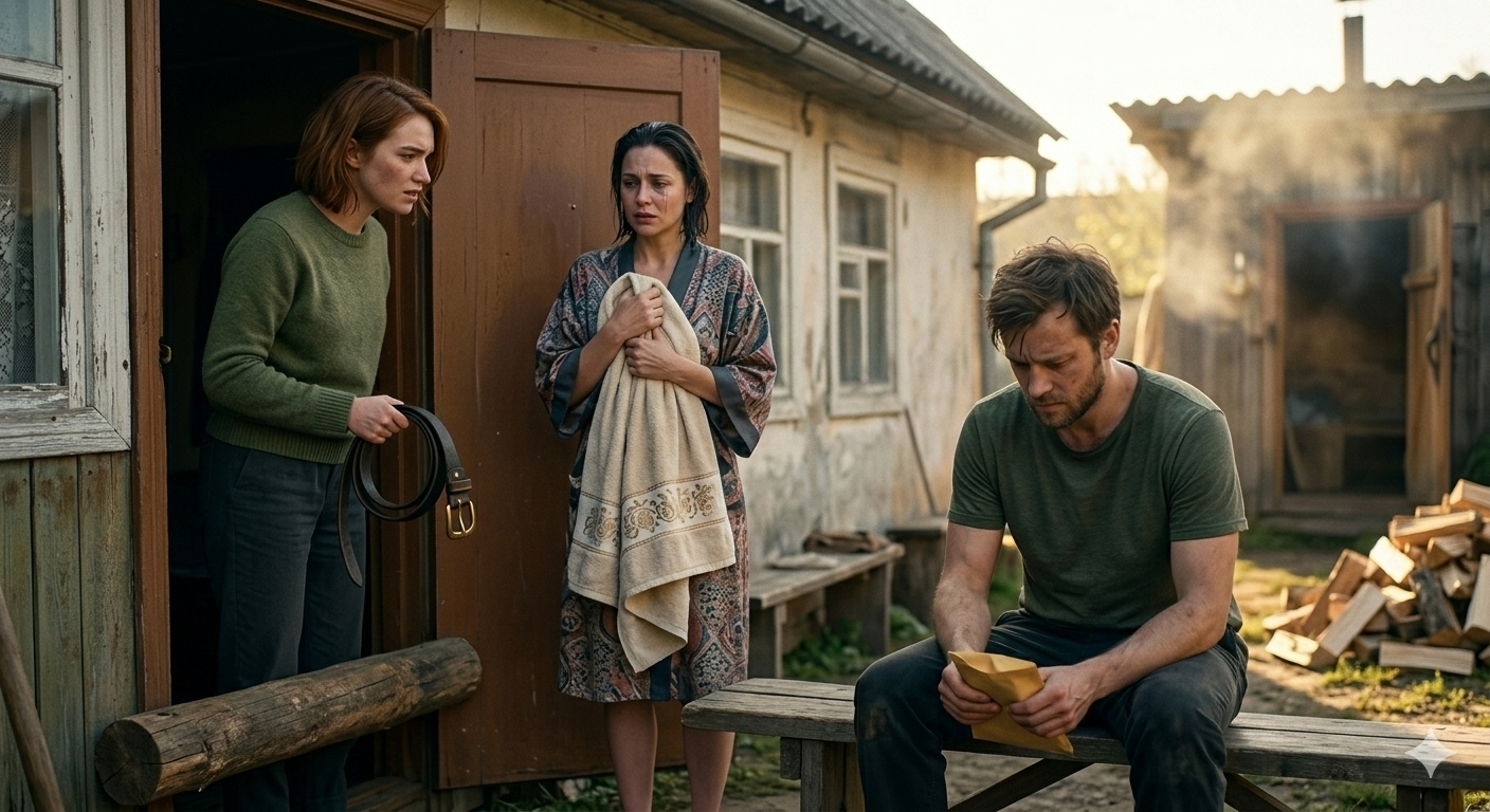 Когда женщина скрылась за дверью бани, Лена действовала быстро. Она подбежала, прислушалась — внутри зашумела вода, загремели ковши. Идеально. Лена подсунула под ручку увесистый чурбак, намертво заблокировав дверь снаружи. Пусть теперь выберется, когда напарится.