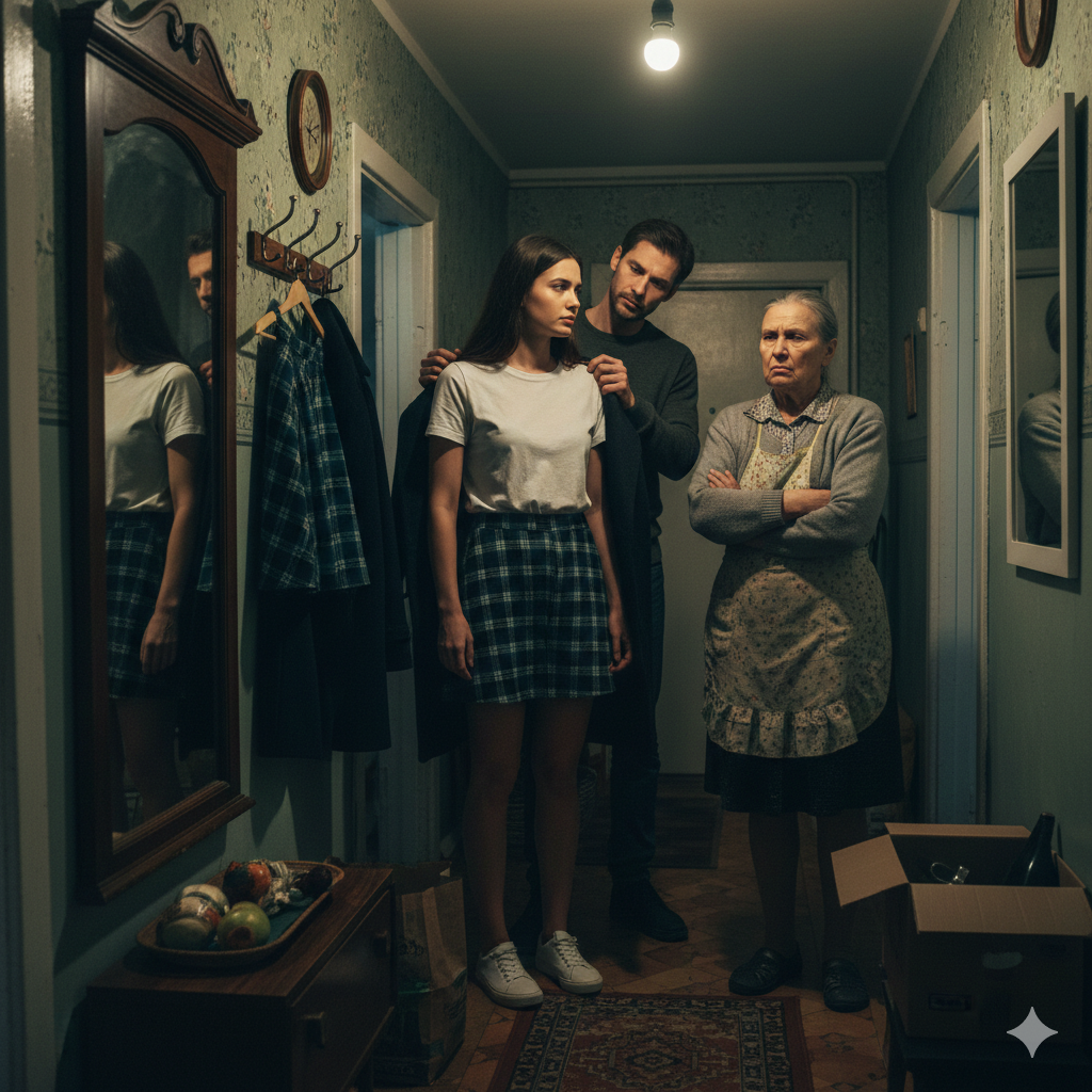 Она надела пальто. Длинное, тёмное, закрывало юбку почти до колен. Мать ничего не увидит, когда вернутся.