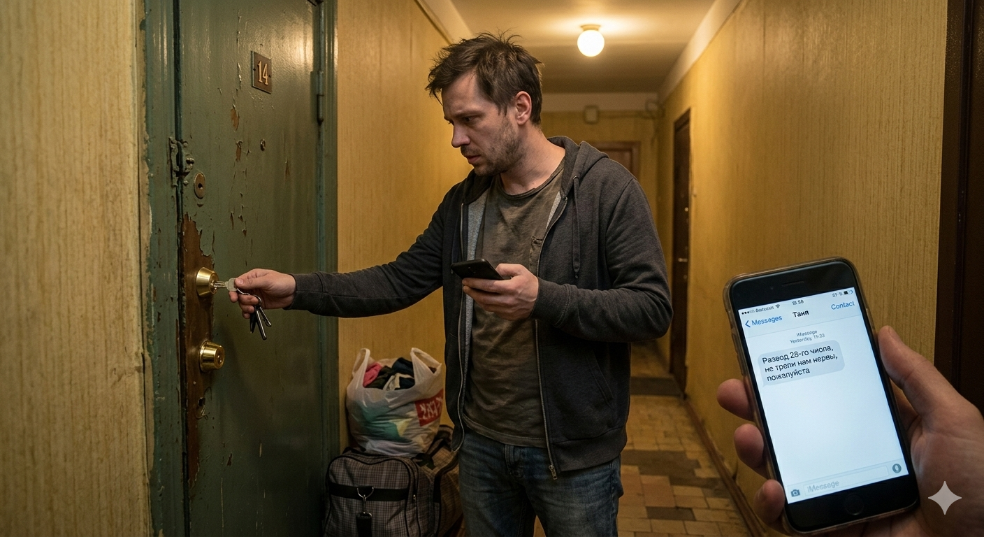 На звонки никто не отвечал, только от жены пришло сообщение: «Развод 28-го числа, не трепи нам нервы, пожалуйста».
