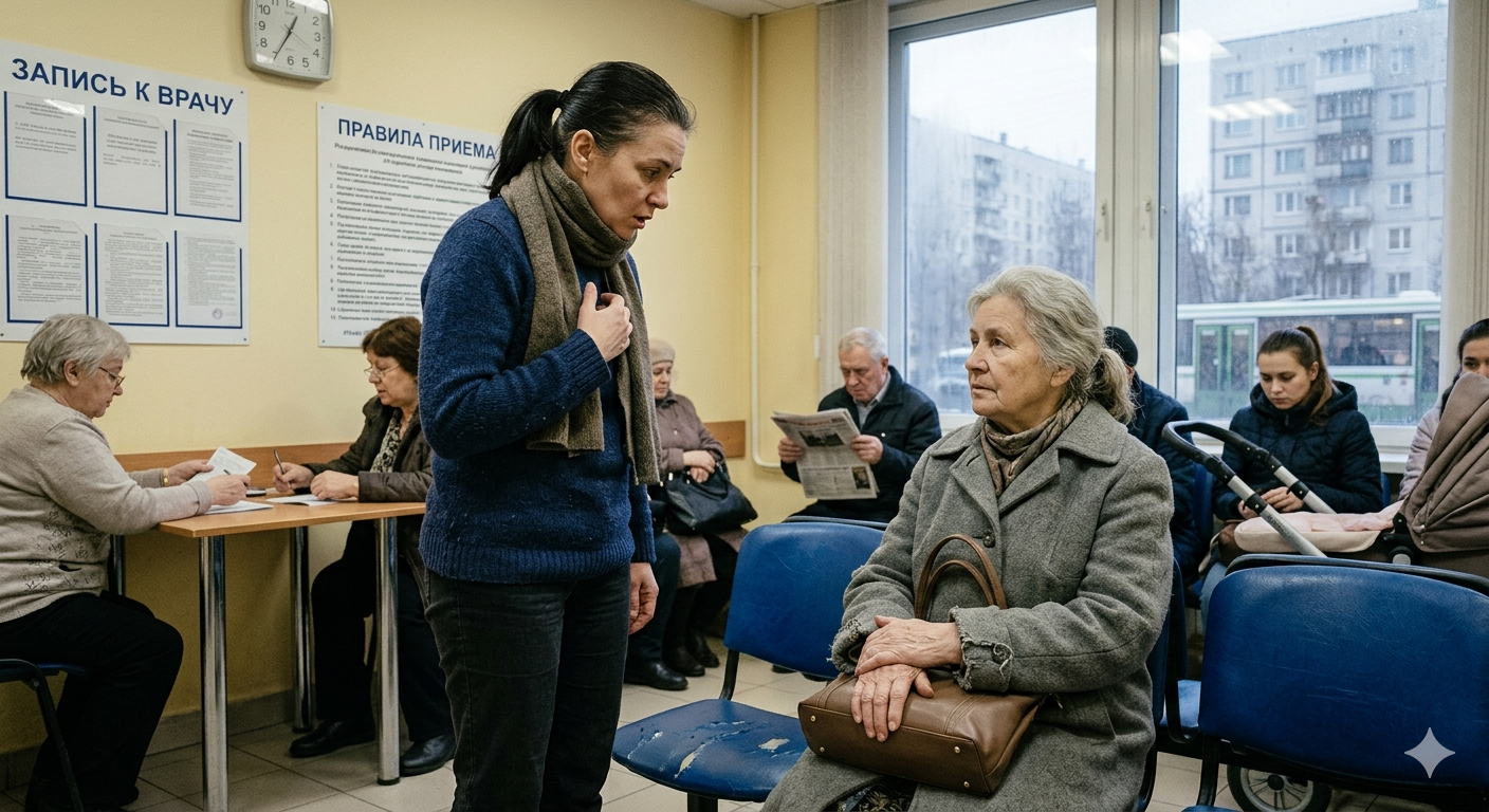 Очередь в районной поликлинике была длинной. Ноябрь принёс с собой сезон простуд, и в регистратуру стояло человек двадцать. Пахло казённо: хлоркой, немного старыми бумагами. Сидели на синих пластиковых стульях: пожилая пара в одинаковых пуховиках, молодая мама с коляской, мужчина с перевязанной рукой. Обычные люди. Которых Елена раньше не замечала.