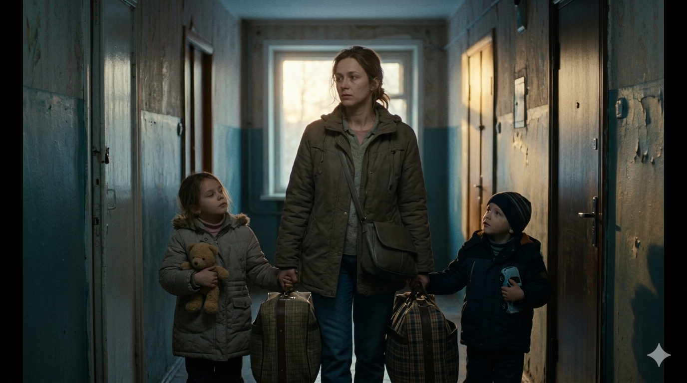 Через несколько часов она стояла во дворе с двумя сумками и детьми.