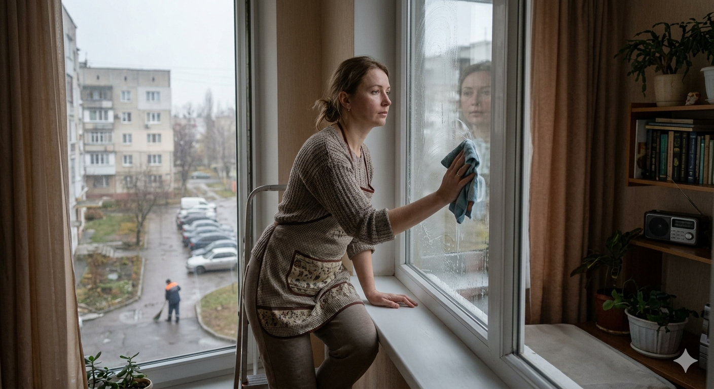 Ранним утром Татьяна принялась мыть окна. Небо было затянуто ровным серым полотном, и свет проникал в квартиру мягко, без резких бликов. Синоптики как раз обещали пасмурную неделю, идеальная погода для генеральной уборки. Солнце не слепит глаза, а на стекле не остаётся разводов.
