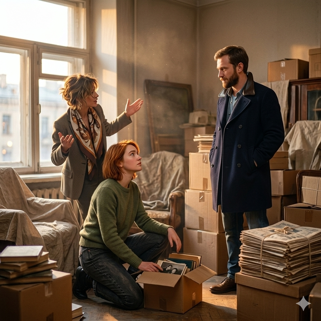 Алиса заглянула внутрь и замерла. Квартира была огромной. Две комнаты, кухня метров двадцать, старинный паркет. Но всё пространство было забито вещами. Коробки из-под обуви громоздились до потолка, стопки газет лежали вдоль стен, на комоде теснились фарфоровые слоники, в углу стоял велосипед без колёс.