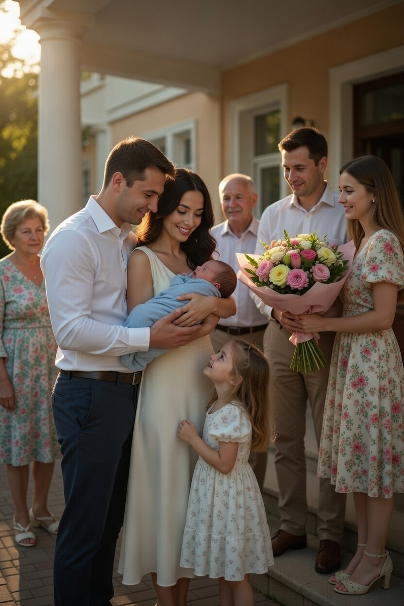 Через три дня Полину выписывали из роддома. Она уже в окно увидела своих родителей. Свекровь свою тётю Таню, Надю за руку держит. А это кто с большим букетом цветов? Неужели Коля? Чистовыбритый, в свежей рубашке, ищет её взглядом. Она вышла на крыльцо, няня Ванечку вынесла. Коля к ним, взял голубой свёрток. Полина глазам своим не поверила, правой рукой тоже владеет, приподнял, свёрток придерживает:
