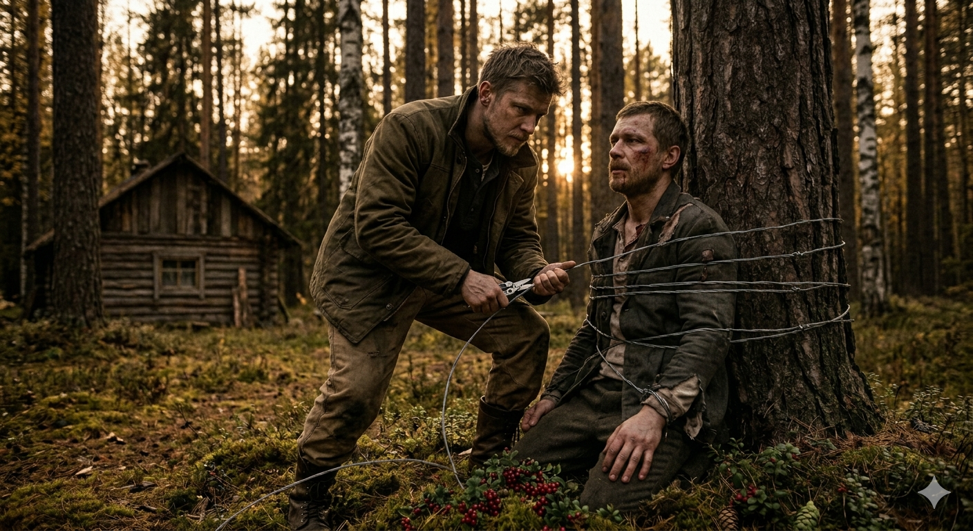 Мужчина был прикручен к сосне стальной проволокой. Не связан — именно прикручен, виток к витку, так, что руки посинели, а пальцы распухли, стали похожи на сосиски. Лицо его было разбито: губа рассечена, левый глаз заплыл, щека в ссадинах. Пиджак дорогой, но висел клочьями. Ботинки городские, на тонкой подошве — в лесу такие за день разносятся в хлам.