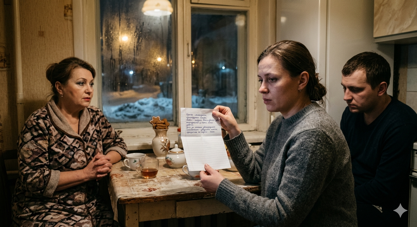Сергей сидел рядом, слишком ровный, слишком молчаливый. Именно это и ударило сильнее всего. Не слова Тамары Павловны. Не сам список. А лицо мужа, на котором не было ни удивления, ни возмущения.