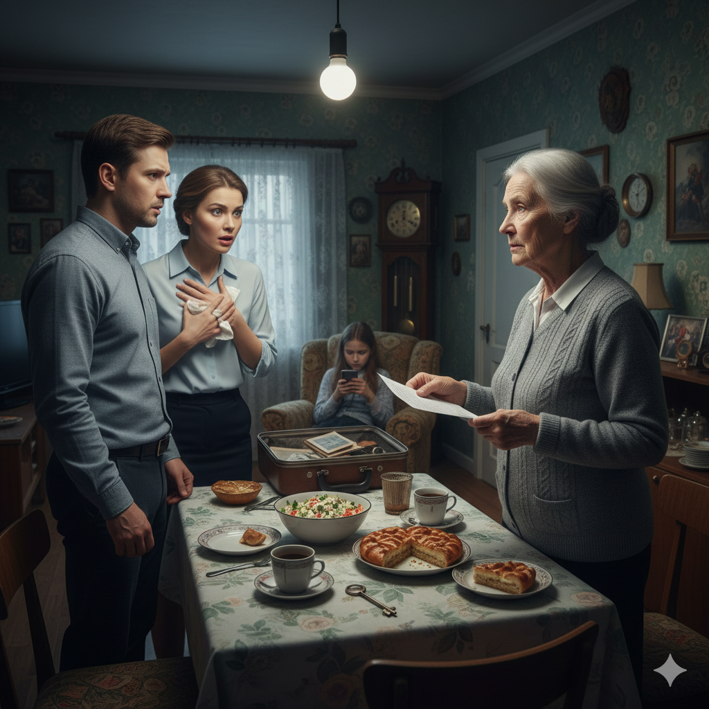 В ушах зазвенело. Я посмотрела на свою невестку Катю. Она быстро опустила глаза, принялась аккуратно собирать крошки со скатерти. Внучка Соня уткнулась в телефон. Я ждала, что сейчас кто-то рассмеётся, скажет: «Шутим!» Но тишина затягивалась, становилась густой и липкой.