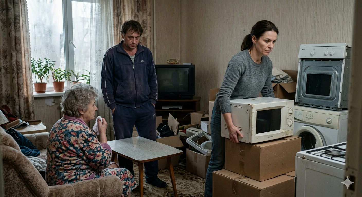 — Таня, он как ураган! — шептала она, нервно теребя халат. — Сначала стиралку, потом этот… телек плазменный. Потом пришёл какой-то мужик с руками-крюками, они отсоединили сплит-систему из спальни. А под конец он твою микроволновку вынес! Самую обычную, «Самсунг», ещё старую.