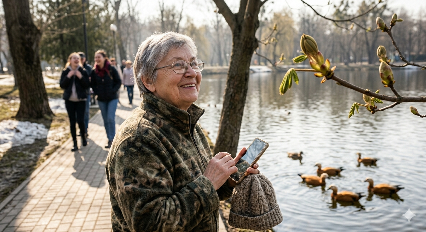 Светило яркое солнышко, снег уже почти сошёл, и лишь местами лежал нелепо грязными кучками. По улице шли люди, смеялись, на пруд уже прилетели утки-огари и хлопотали – селезни выбирали себе уточек.