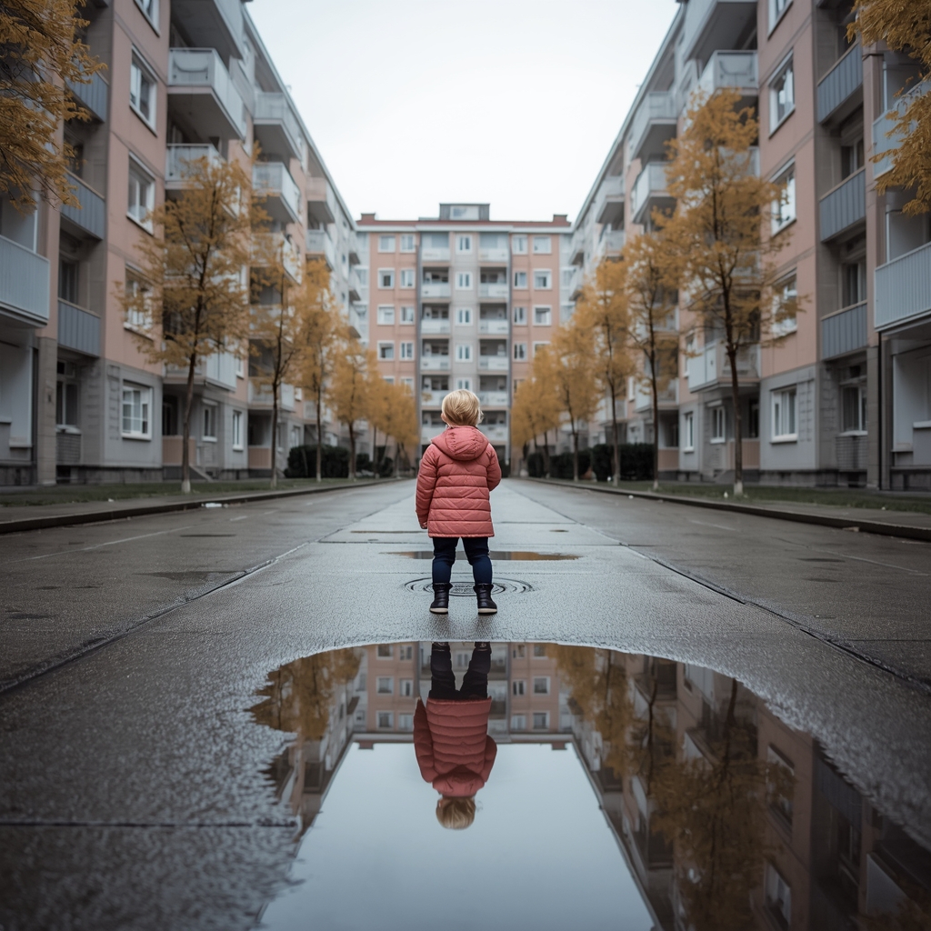 На тротуаре, чуть поодаль, стояла маленькая девочка. На вид ей было не больше четырех-пяти лет. Её тонкая розовая курточка явно не предназначалась для такой погоды, а шапочка была надета кое-как, оставляя уши незащищёнными. Малышка была без перчаток, её руки покраснели от холода, пальцы слегка подрагивали. Она смотрела вниз, на разбитую ледяную корочку, из‑под которой просочилась вода, намочив ботинок. В глазах стояли слёзы – то ли от неожиданности, то ли от обиды, что прогулка так неудачно началась.