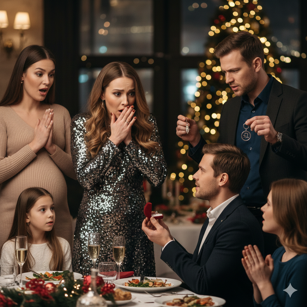 Когда дошло до обмена подарками, Стас встал перед Полиной на одно колено.