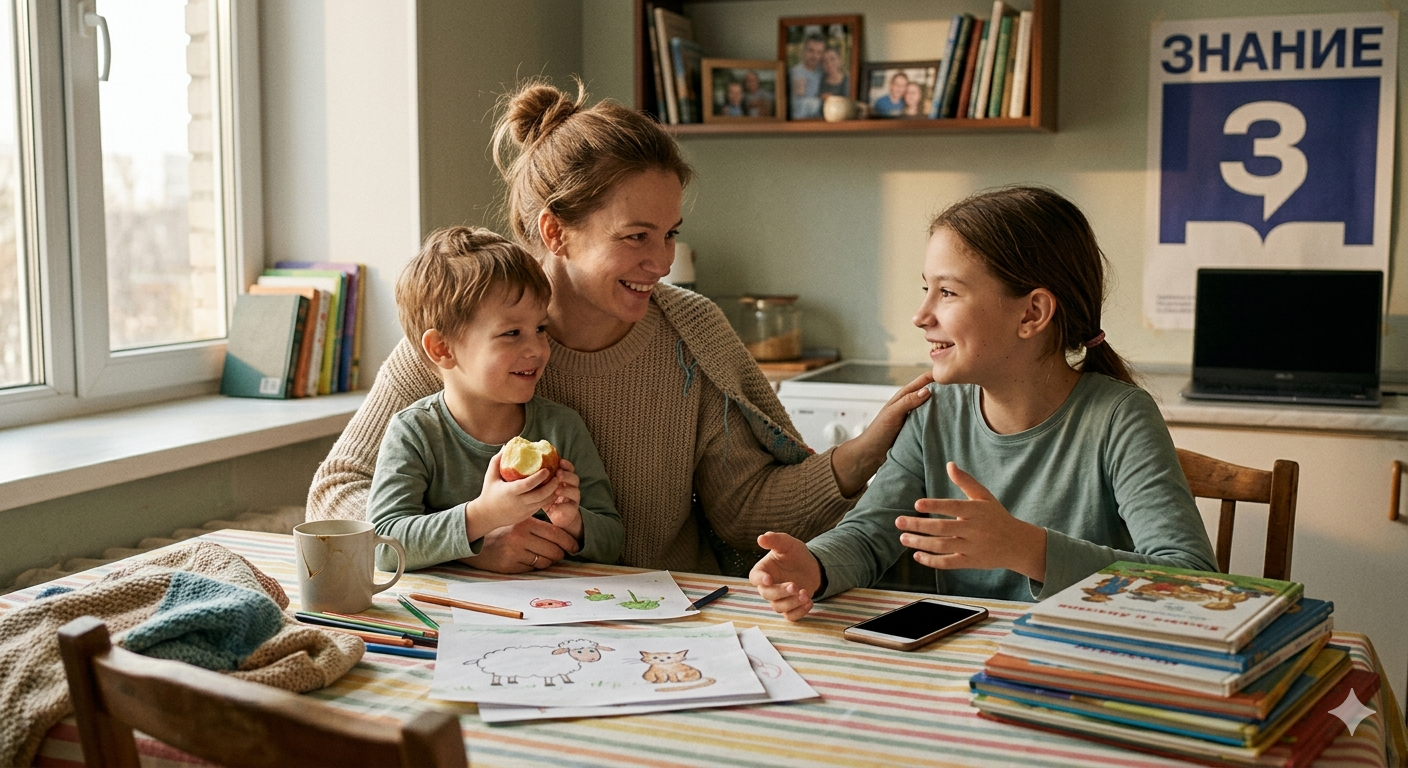 — Привет, друзья! — улыбнулась Марина. — У нас сегодня прямой эфир, и я хочу не просто поболтать, а предложить вам кое-что интересное. Вы знаете, как долго мы восстанавливали наши отношения с детьми. И знаете, что нам невероятно помогло? Книги. Совместное чтение. Это магия, когда вы сидите рядом, смеетесь над одним героем или переживаете за другого. На днях мы с Катей и Артемом открыли для себя замечательный проект. На открытии Всероссийской недели детской книги Общество «Знание» запустило приём заявок на Всероссийский интернет-конкурс «Читаем всей семьей».