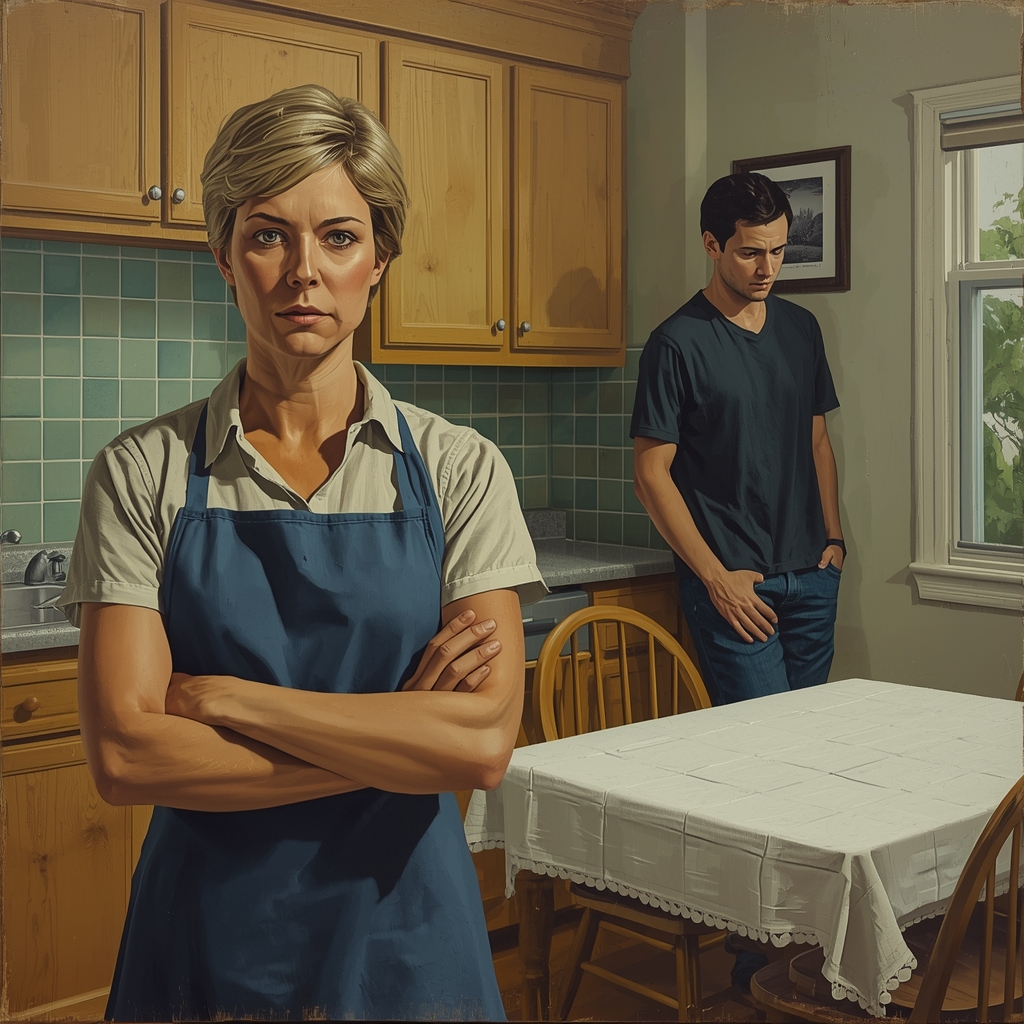 Галина сняла фартук. Тот самый, который она надела для вида, когда гости уже звонили в дверь, льняной, старый, со скромной полоской по кайме. Она сложила его аккуратно, раз, потом ещё раз, и повесила на плечо Виктора. Молча. Просто повесила и отпустила.